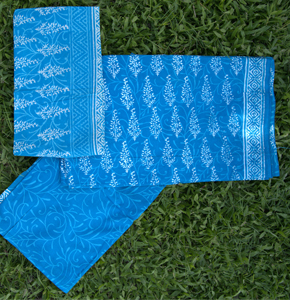 Original hand-blocked patterns are carved on the fabric with help of wooden blocks.  Plant-based dyes are used which imparts bright and long-lasting color to the clothes. Each pattern printed with the hand block technique is unique and conveys aesthetic vibes. The finest quality cotton is used to manufacture garments that impart a simple yet elegant look.  Our brand collaborates with the artisans of Jaipur to develop clothing sets using this art form and provide authentic products to the customers.